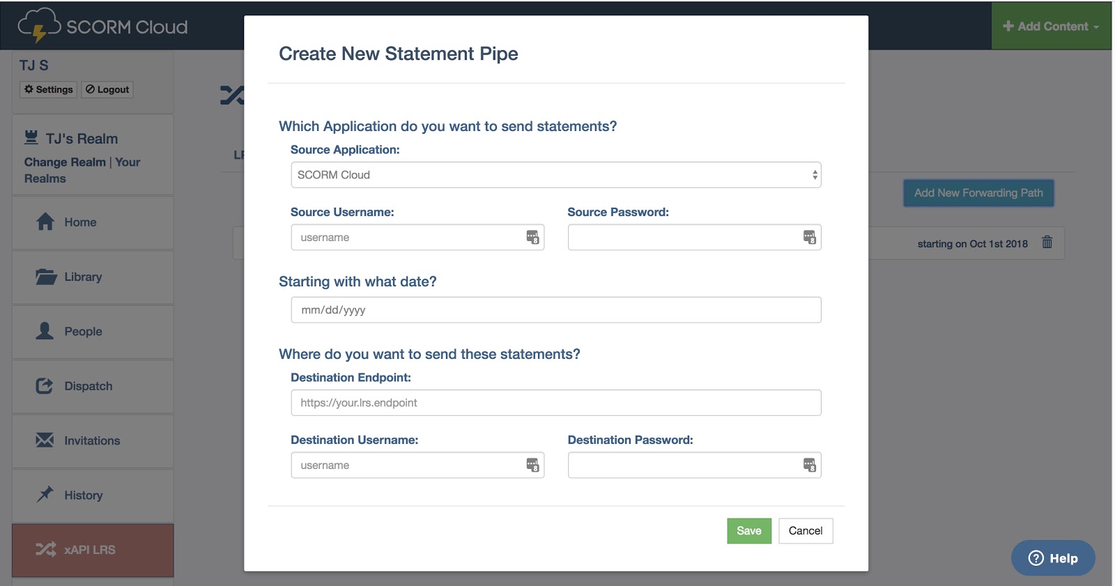 The Brothers Donnelly can view the LMS’s xAPI data in SCORM Cloud’s xAPI Learning Record Store. They set up xAPI credentials within SCORM Cloud and create a new statement pipe to Watershed, which allows them to forward xAPI statements to that learning analytics platform.